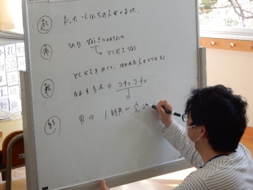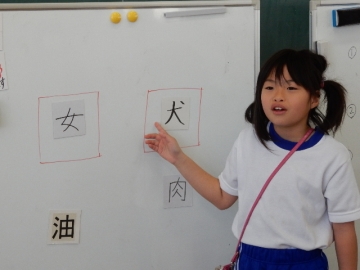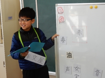 次は、お話作りです。漢字カードを一つ持っていて、起承転結のお話し作りです。できるのかなって心配になりなしたが、本当にすばらしい活躍でした。