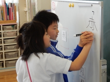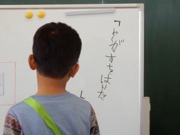 今日は、4人そろって国語の学習です。4年生と2年生と1年生がいっしょにどのような国語をやるのだろうと興味深深で参観させていただきました。