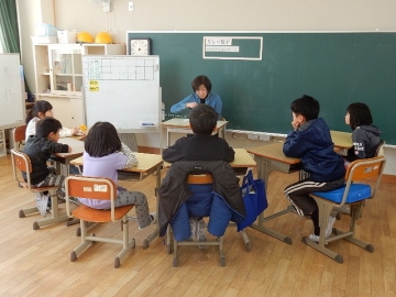 計算カードを使ったリレーションゲームを行っていました。一人一人の計算する速さと正確さを要します。子どもたちは、計時係や記録係なども分担しながらゲームを進めていました。