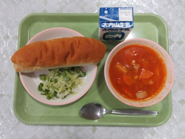 ・こめこいりパン ・ポークビーンズ ・アスパラガスのサラダ ・牛乳
