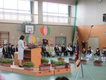 「国歌斉唱」に続き、「学校長のことば」。