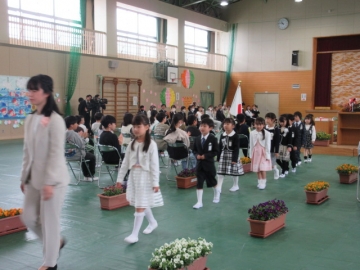 1年生が退場します。拍手で送ります。