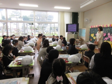 1年生の教室で、担任からのおはなしです。