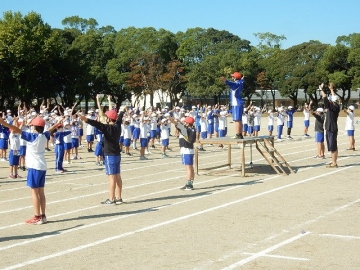 運動会の全体練習を行いました。全ての子どもたちが一か所に集まる機会を減らすため、本年度は1回だけの実施です。開会式・閉会式の動きや赤組と白組に分かれた応援の掛け声などを確認したり、各係の動きを確認することも兼ねた1年の個人競技(徒競走)を試したりしていました。できないことをあれこれ考えるのでなく、できることを考えて取り組む「かんべっ子」であり続けましょう。