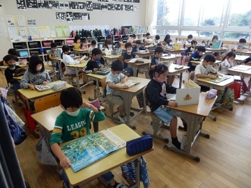 2年の教室をのぞくと、子どもたちが本を読んでいました。読書の時間です。子どもたちの活動が途切れないよう、写真を撮って早々に出ました。