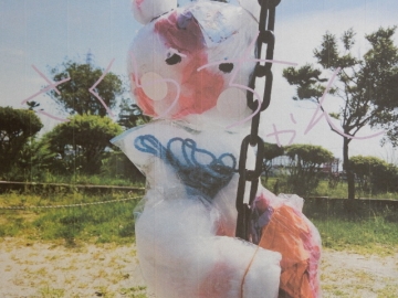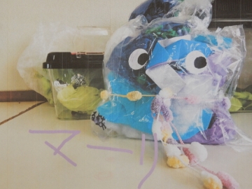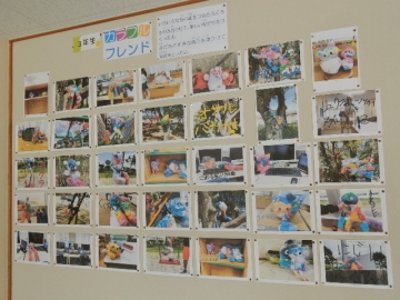 3年の子どもたちが撮った「カラフルフレンド」が2階のギャラリーに掲示してありました。様々な色の花紙と透明なビニール袋を使って作った“友だち”です。写真の撮影も名前の書き込みも、子どもたちがそれぞれのタブレット型パソコンを使って行いました。