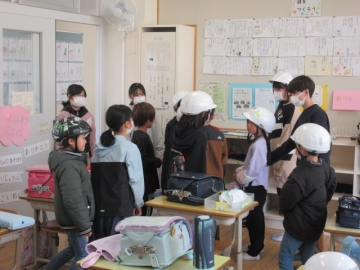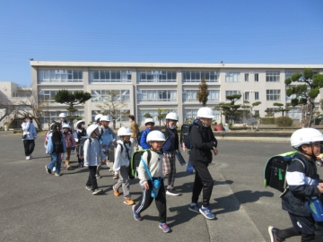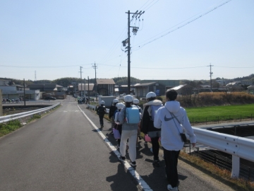 6年生が卒業し、新1年生といっしょに登校することを見据えて、地区ごとに安全を確認します。