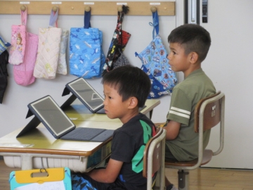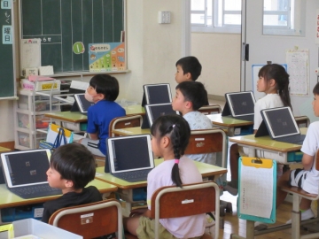 1ねんせいは きょうしつから すぐに、そとへ でることが できます。
