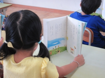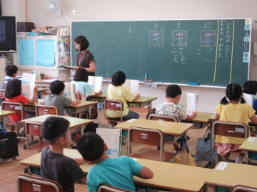 「かたかな」の れんしゅうの あと、おんどくを しています。