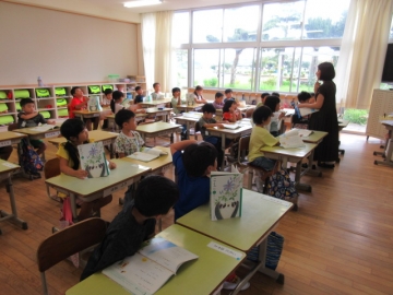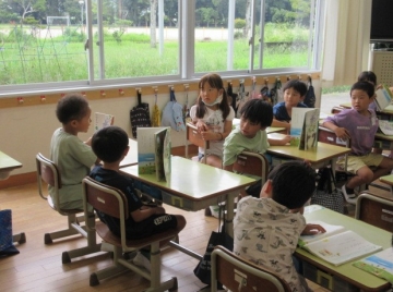 おんどくの ときに、どんな くふうを したか、みんなに つたえています。