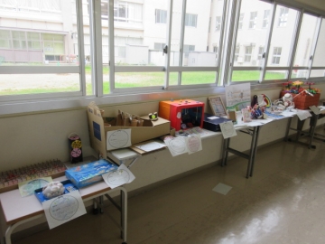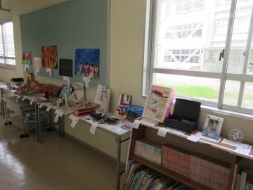 ろうかには、なつやすみに とりくんだ さくひんが、てんじ してあります。