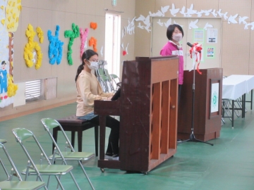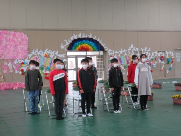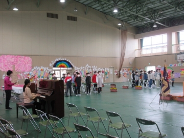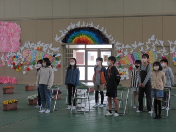 1ねんせいの 「おてほん」になれるよう、にゅうがくしきの れんしゅうを しています。