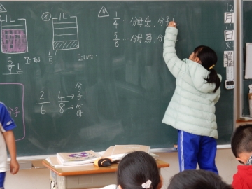 こちらのクラスは、分数と小数の関係について学習中。