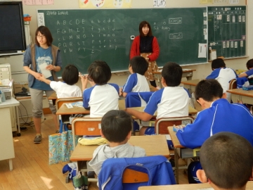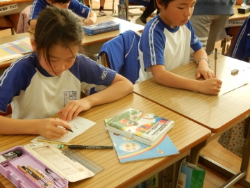 自己紹介と「I Like~」を伝えるカードを作成中。