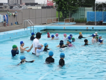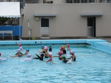 2回目の水泳の授業です。みんな上手に着替えて、水にもなれてきました。