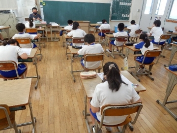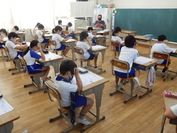 3年の子どもたちが単元末のテスト「掛け算の筆算」のに取り組んでいました。少し見て回ったところ、無回答(解答枠の空白)のままは少ないようです。早々に退出しました。