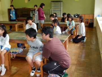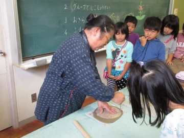今日は、安東小・櫛形小・片田小・神戸小の4小学校が、櫛形小学校に集まって、陶芸教室をしてもらいました。お皿を作りました。すごくはやく出来上がってしまいました。焼いてもらって返ってくるのが楽しみです。