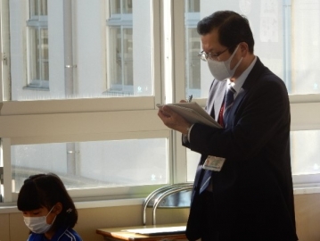 本校は、県教育委員会の事業を受け、定期的に学力向上アドバイザーの方に来ていただいて、教員の授業力が向上するよう助言していただいています。今日も、習熟度別の授業などを参観していただいた上、放課後などの時間を使ってそれぞれの授業者に改善点を助言していただく予定です。