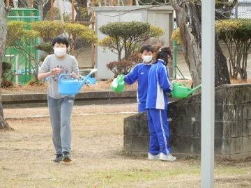 【園芸委員会】会合が終わって、草花の手入れなどを行っていました。