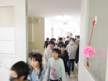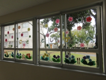 入口のドアには、図書ボランティアの後藤さん手作りの、素敵な桜の飾りがあります。