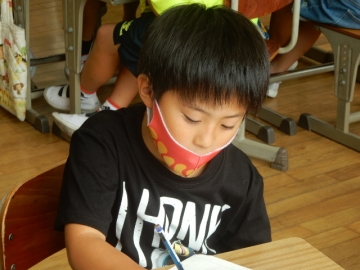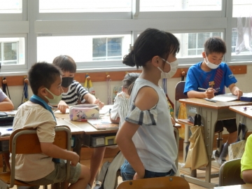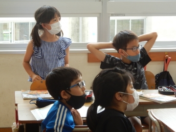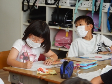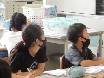余りが出る割り算の文章問題を解いていました。単元「わり算を考えよう」の学習ももうすぐ終わります。授業がグループ毎の話し合いを保障しながら進むので、子どもたちも隣席の子に「どういうこと?」などと質問しやすいようでした。