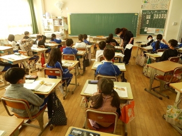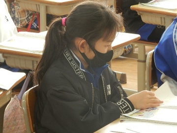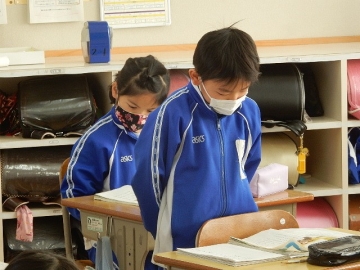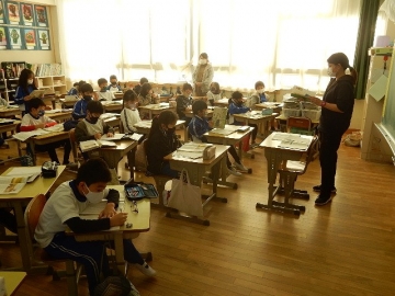 2年の子どもたちが、単元「スーホの白い馬」を学習していました。各場面の描写がとても魅力的な物語なので、それらを想像しながら読むことができます。今日の授業も、子どもたちが場面毎の情景などを伝え合いながら進む展開でした。