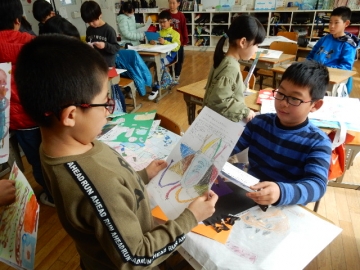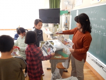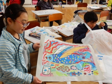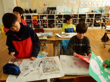 今日は、3年生が、1年間、図工で作ってきた作品を入れる袋を作っていました。すてきな作品がいっぱい作れましたね。
