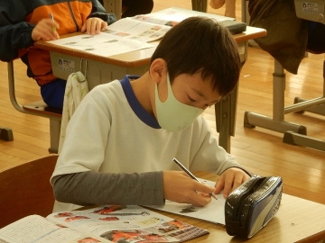3年の子どもたちが、消防について学習していました。今日は、消防車の種類や役割について調べる内容です。絵本などを見て普段から身近に思う話題であるためか、よく知っている子も多いようでした。