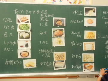 大豆のはたらき。国語でも「すがたを変える大豆」の学習をしていますので、食教育としても大豆のすばらしさを学習しました。