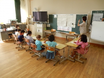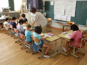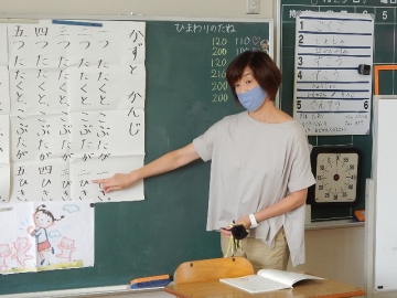 単元「かずとかんじ」を学習していました。教科書をリズミカルに音読したりプリントの漢数字をなぞったりする活動です。子どもたちは、最後までしっかりと取り組んでいました。