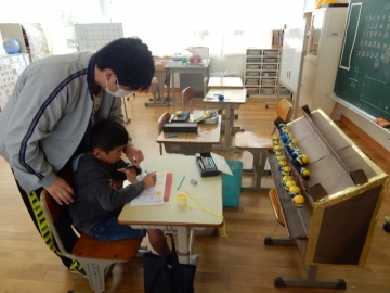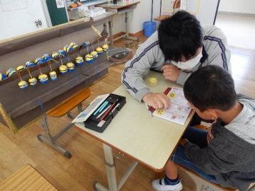 「六」という漢字を練習していました。バザーに出すミニたわしストラップもだいぶできてきました。