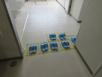 保健・校内美化委員会さんが、トイレのスリッパをそろえるための取り組みを続けています。