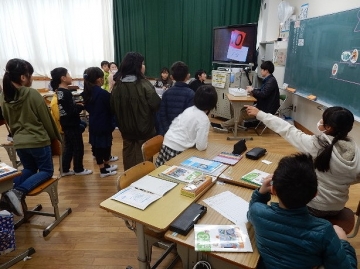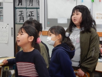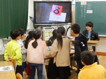 子どもたちの表情が楽しそうなので、「お楽しみ会を行っているのかな。」と思って教室に入ると、算数の授業でした。分数を少数に変える早答えゲームです。しばらく参観していたら、ある子が「みんなが楽しく覚えるように、先生が考えてくれました。」と解説してくれました。