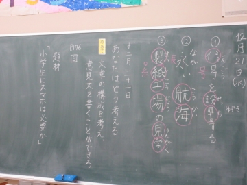 めあて「文章の構成を考えて、意見文を書くことができる。」