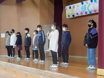 6年生を送る会を行いました。司会や進行、会場の準備・片付けなども、5年の子どもたちの担当です。コロナ禍の状況が続いている中、それぞれの学年ができる限りの工夫を講じながら6年生に向けた感謝の気持ちを表し、それに応える6年生の発表も本当に素晴らしいものでした。