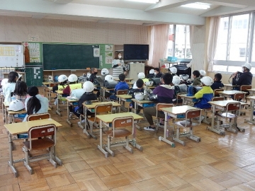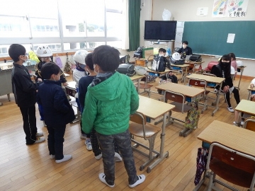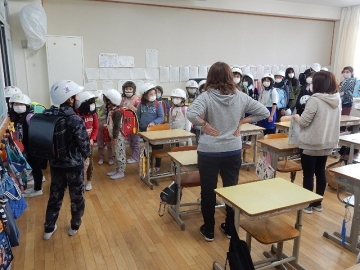 地区集会を行いました。本年度の最後ですので、子どもたちは、本年度の状況などを振り返るとともに、4月に新入児童が加わった時の登校班の並び方なども確認していました。これが終わったら、地区別の集団下校を行う予定です。