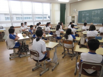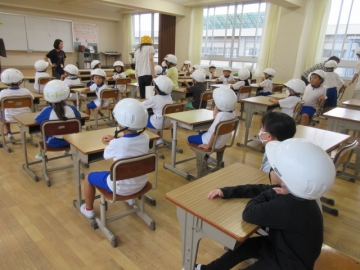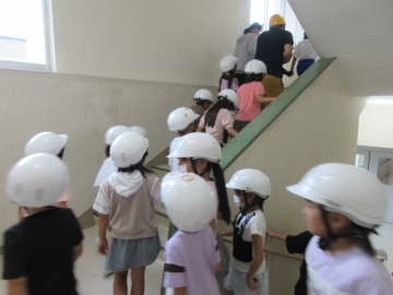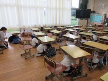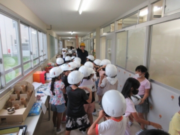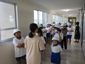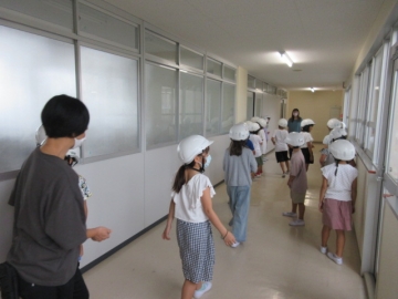 【2年生】 ゆれが、おさまりました。校しゃの3階に ひなんします。