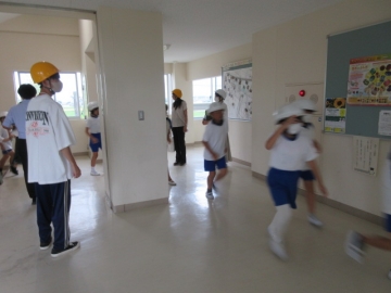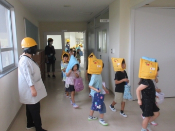 9月は「防災月間」です。「南海トラフ巨大地震」クラスの地震が発生した場合を想定し、避難訓練を行いました。