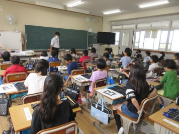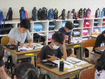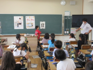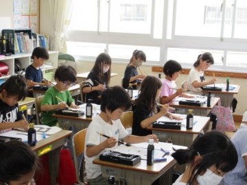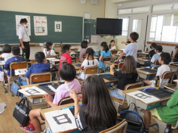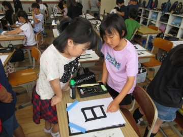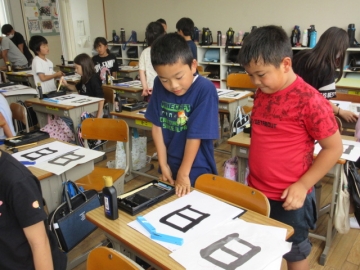 毛筆の練習です。「日」を書く時、何に気を付ければよいか、まず確認します。