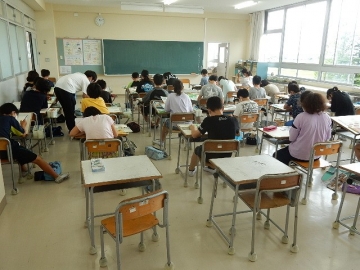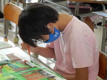 6年の子どもたちが水彩画を描いていました。コトッの音もないぐらいに集中した雰囲気だったので、写真を撮ったらすぐに図画室を出ました。
