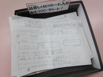 景品は、委員会の子たちが手作りした、かわいいしおりです。