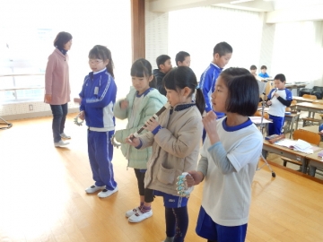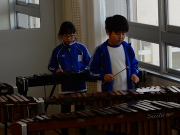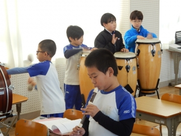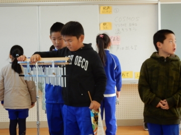 6年生を送る会で発表する歌と演奏の練習をしていました。「愛は勝つ」の替え歌です。