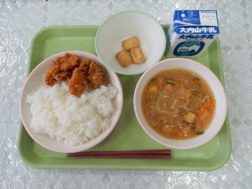 「防災の日」にちなんだ献立です。ごはんは、火加減に注意しながら、給食室の釜で炊いていただきました。
