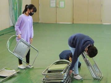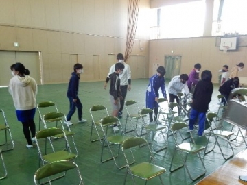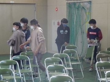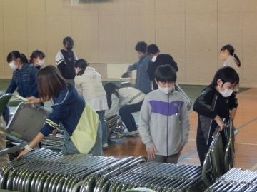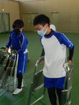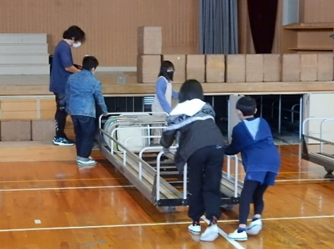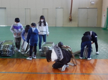 体育館に立ち寄ったら、5年と6年の子どもたちがシートを敷いたりパイプ椅子などを並べたりしてくれていました。本当によく動く子どもたちです。ありがとう。