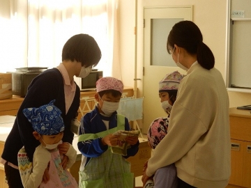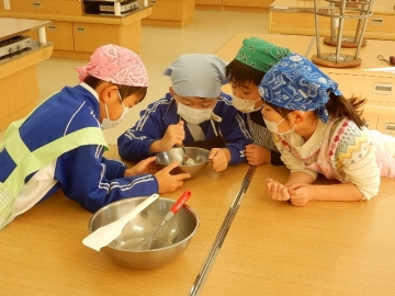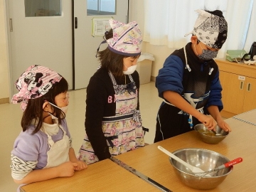 ケーキづくりにチャレンジしました。チョコレートケーキのグループと抹茶ケーキのグループに分かれて作ります。実習生の2人も参加してくれ、子どもたちは嬉しそうでした。