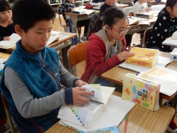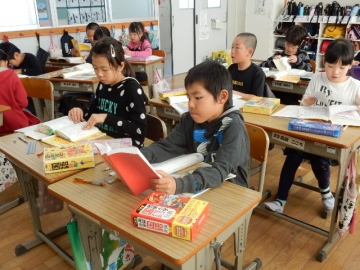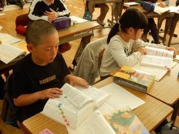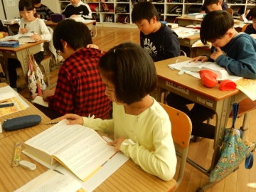 国語の教材に、「三年とうげ」という物語があります。わからないことばや難しいことばを調べています。
