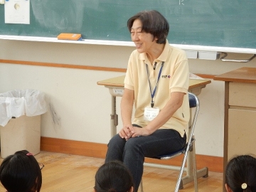 10月8日と10日の朝はストーリーテリングでした。今回は、日本の昔話「大きな頭の男の話」を語っていただきました。