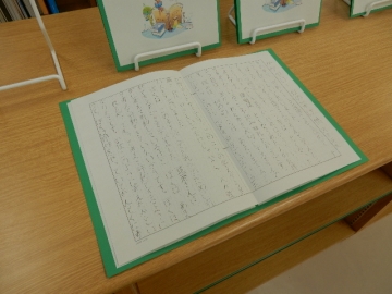 校内を巡回していたら、図書室に入ってすぐのところに展示されている本年度の読書感想文コンクール入選作品を見つけました。いずれもしっかりと書いてあって、しばらく読み入っていました。