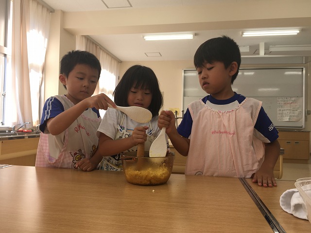 修学旅行が終わったら、みんなで食べられるようにとスイートポテトをつくりました。