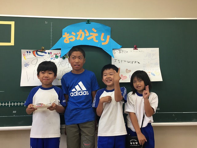 6年生がいないあいだ、1年生3年生は「今頃、ご飯食べてるかな?」「お風呂は露天風呂に入っているのかな?」と、想いをめぐらせながら過ごしました。